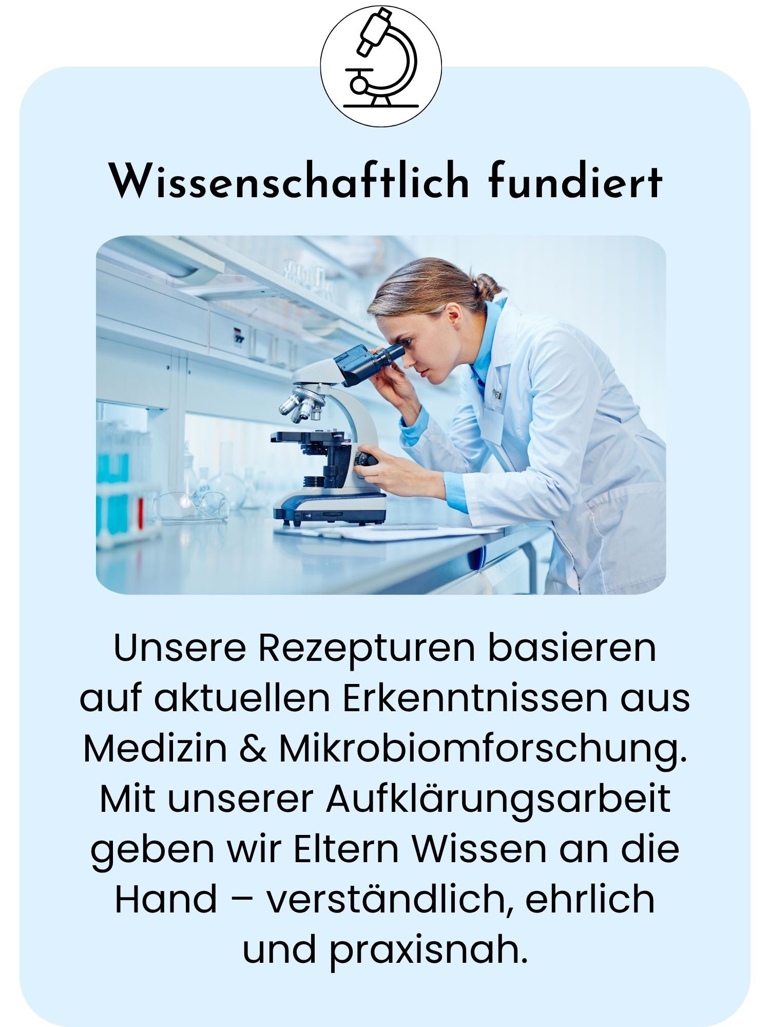 Für eine stabile Wirkung empfehlen wir eine Einnahme über mindestens 3 Monate. Besonders bei Kindern mit ADHS, Autismus oder anderen Entwicklungsbesonderheiten kann auch eine längere oder dauerhafte Anwendung sinnvoll sein, da hier häufig eine geringere Bakterienvielfalt im Darm vorliegt.
