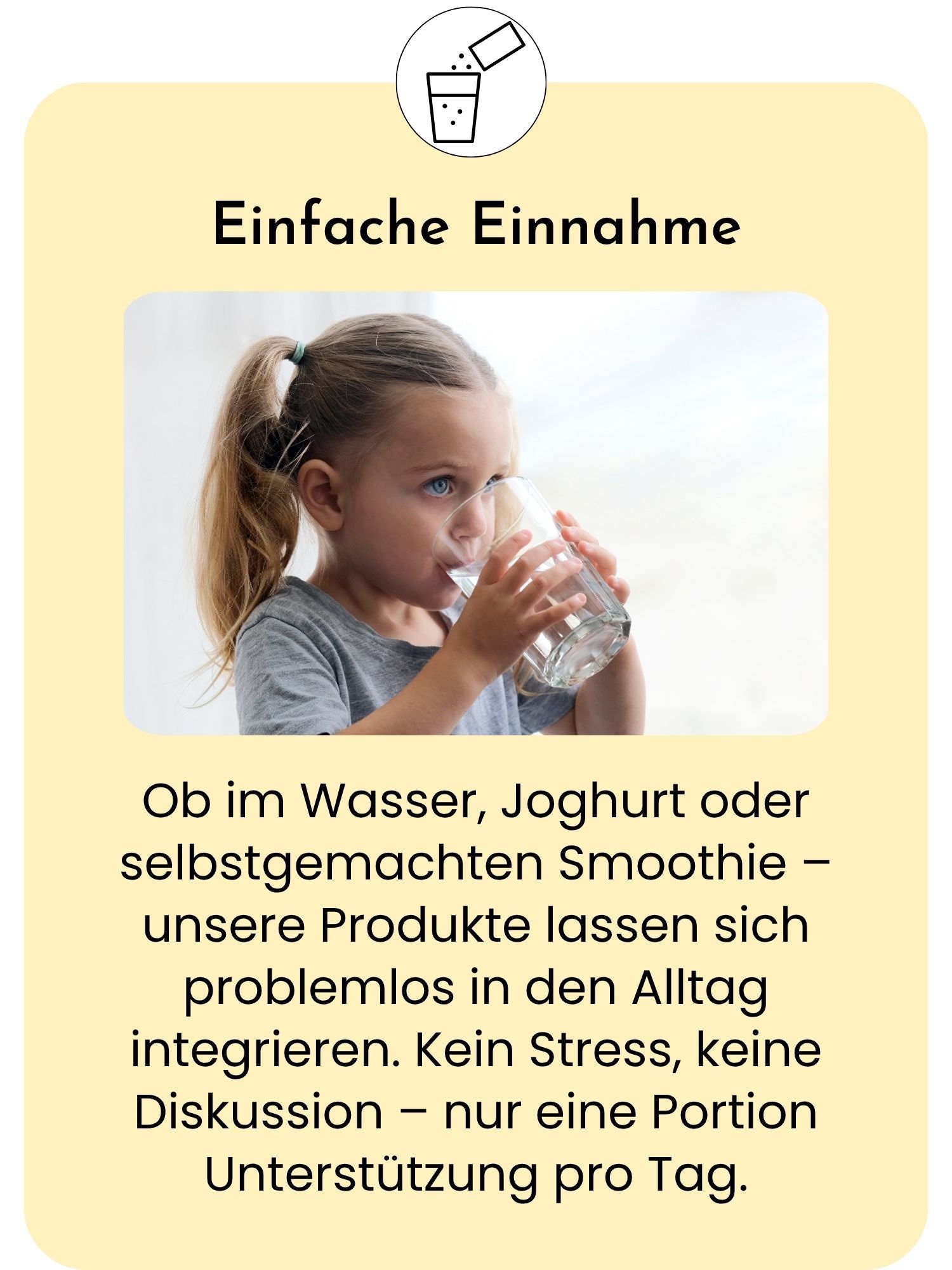 Einfach täglich in Flüssigkeit oder Speisen einrühren – ganz ohne Kapseln oder Tabletten.